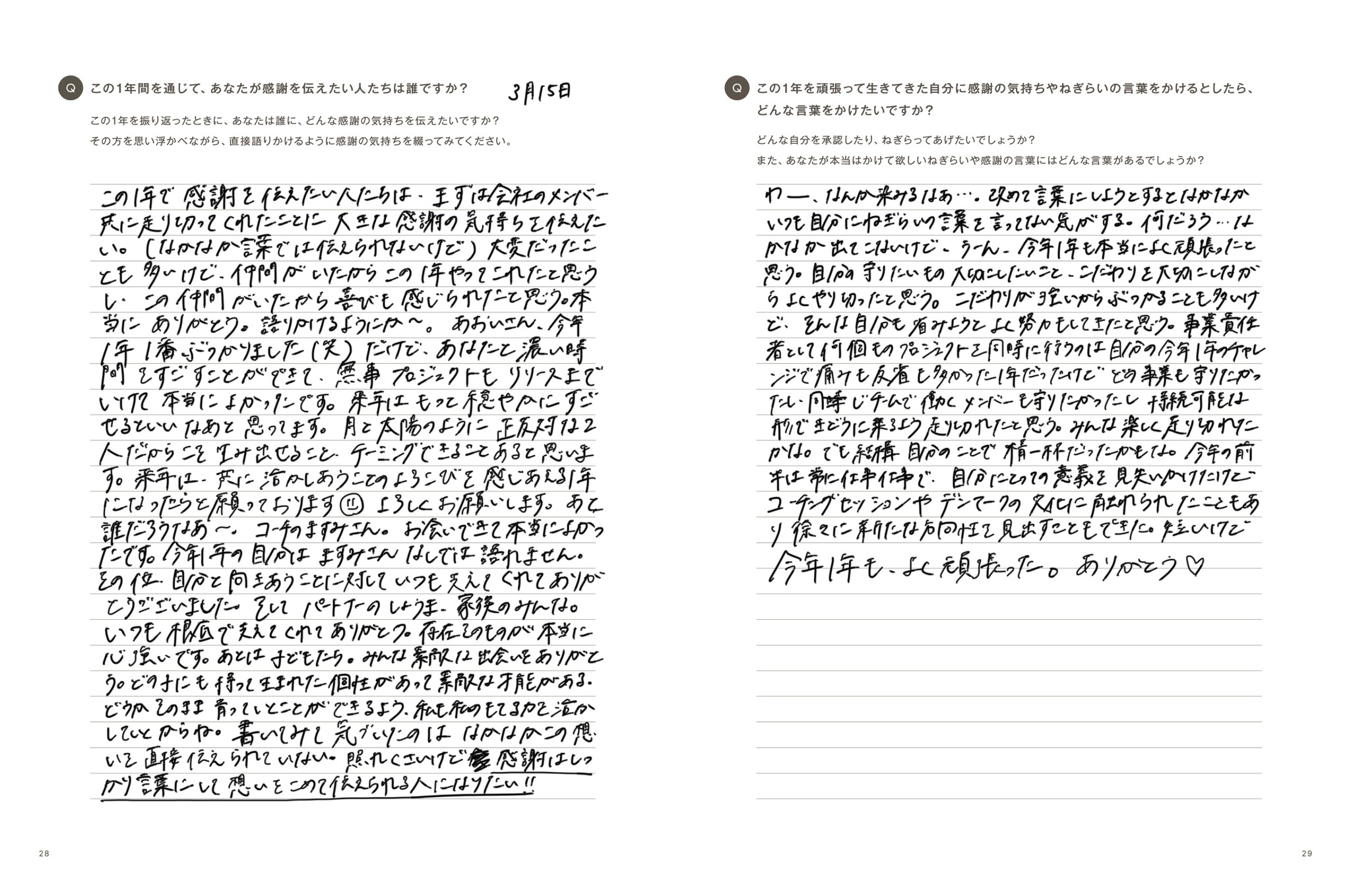『1年を振り返る問い』もその1つですが、こちらのページはジャーナリングと同様に心に浮かんだことをそのまま書いてみることをおすすめしています。