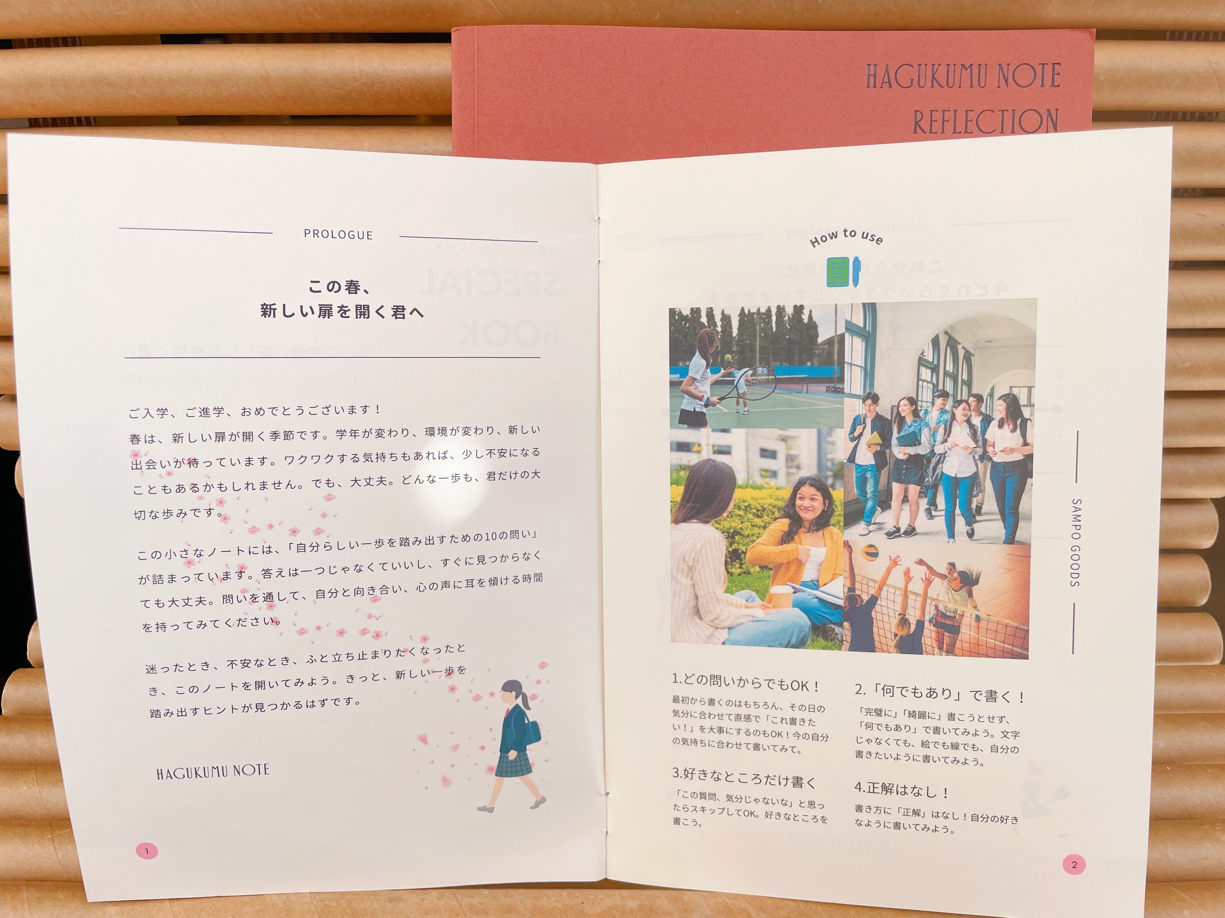 この春、HAGUKUMU NOTE に 進学・進級する中学生〜大学生向けの「ジャーナリングの問い」付きスペシャルブックをセットにしたギフトアイテムが登場!